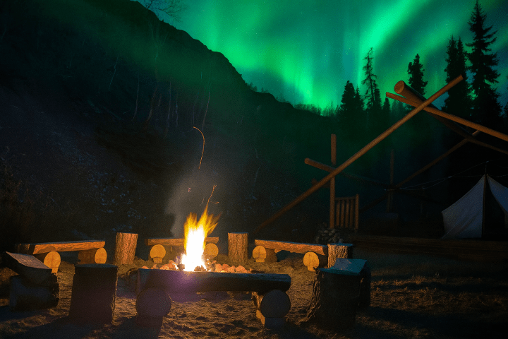 Gather around a crackling fire under the vast Yukon sky. Connect with fellow travellers as you share stories and warmth, all while keeping an eye out for the mesmerizing aurora above.